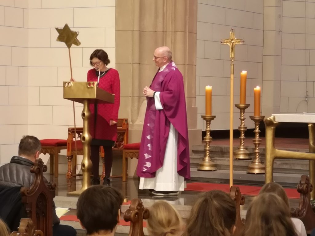 Pfarrer Göttle und Religionslehrerin Gudrun Deutsch führten auf gewohnt freundliche, heitere Weise durch diesen besonderen Gottesdienst, sodass sogleich eine vertraute Atmosphäre entstand.