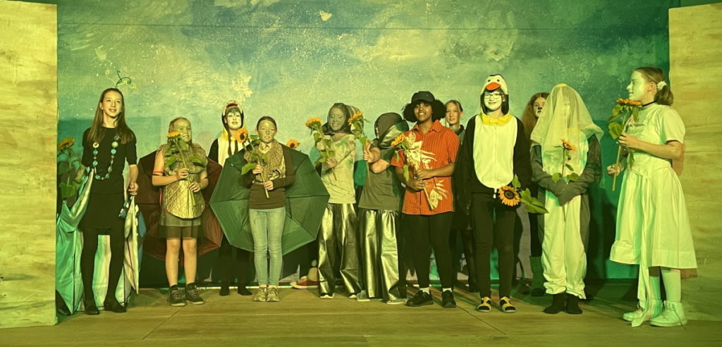 Beate Voigt hat seit Beginn des Schuljahres die Leitung der Theater-AG übernommen. Dies erwies sich schon bald als großes Glück. Denn was unsere Schülerinnen wenige Wochen vor den Sommerferien auf der Bühne darboten, war einfach großartig. An der Arche um Acht von Ulrich Hub präsentierten die Schülerinnen sehr überzeugend. Ein Stück, in dem es um Glaube und Freundschaft geht, dynamisch, mal komisch und mal tiefgründig. Die wechselnden Kulissen, die schönen Kostüme und die unterhaltsamen Gesangseinlagen machten die Darbietung zu einem kurzweiligen Vergnügen.
