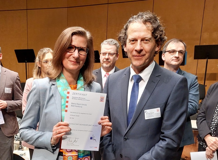 Die Maria-Ward-Schule wird vom Hessischen Ministerium für Kultus, Bildung und Chancen als “Schule mit Schwerpunkt Musik” ausgezeichnet
