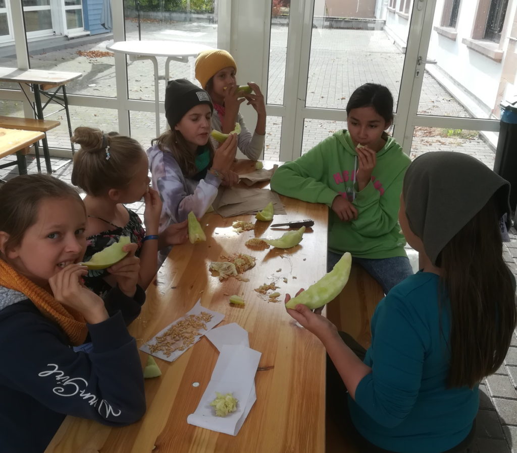 In den nächsten Wochen planen wir Apfelkuchen zu backen, unsere Tomaten zu Tomatensauce zu und unsere Äpfel zu Saft zu verarbeiten.