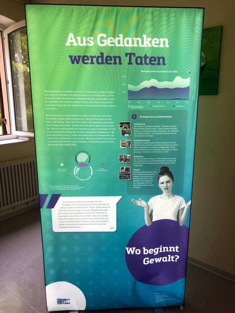 Aktuell gibt es an der MWS eine Ausstellung der Friedrich-Ebert-Stiftung zu sehen, die von Bildungsreferent Manuel Glittenberg heute mit einem anregenden Vortrag und interessanten Diskussionen rund um das Thema Rechtsextremismus eröffnet wurde.