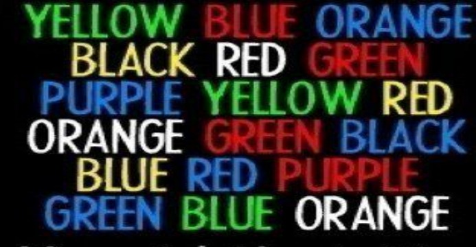 Versuchen Sie NICHT das Wort zu lesen, sondern nennen Sie die FARBE des Wortes