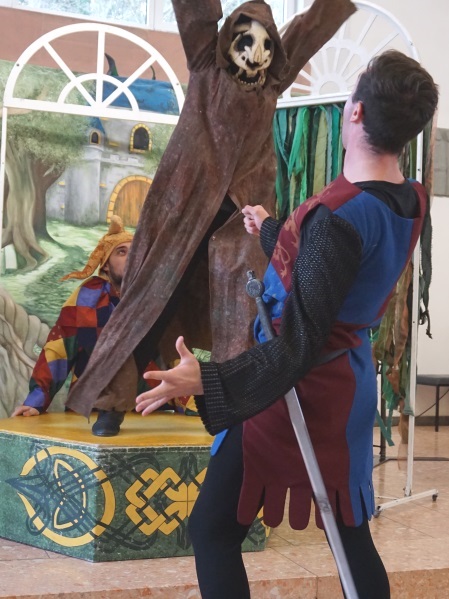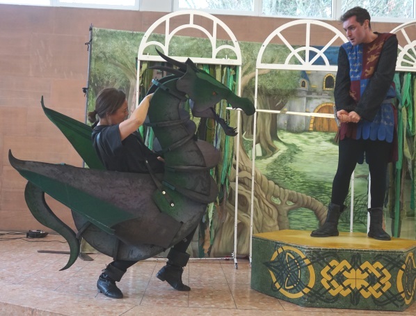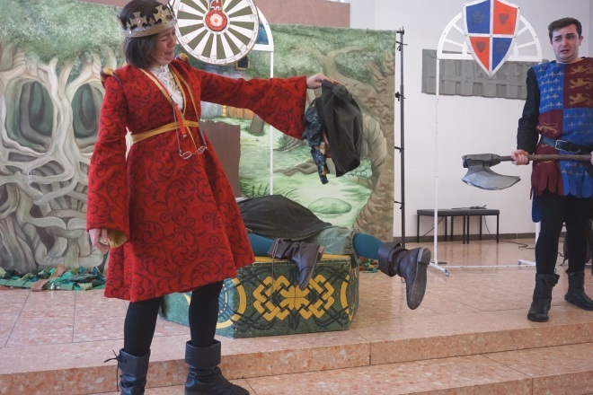 Das pädagogische Theaterensemble war der Einladung von Helen Gabrielpillai gefolgt und präsentierte eine moderne Adaption der Ritterromanze „Sir Gawain und der grüne Ritter“.