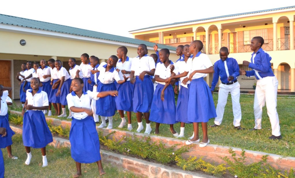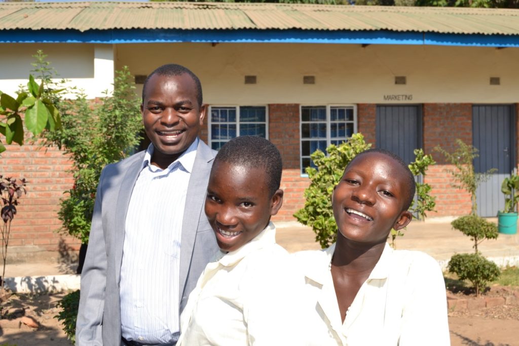 Father Robert Songa und einigen seiner Schülerinnen und Schüler in Malawi