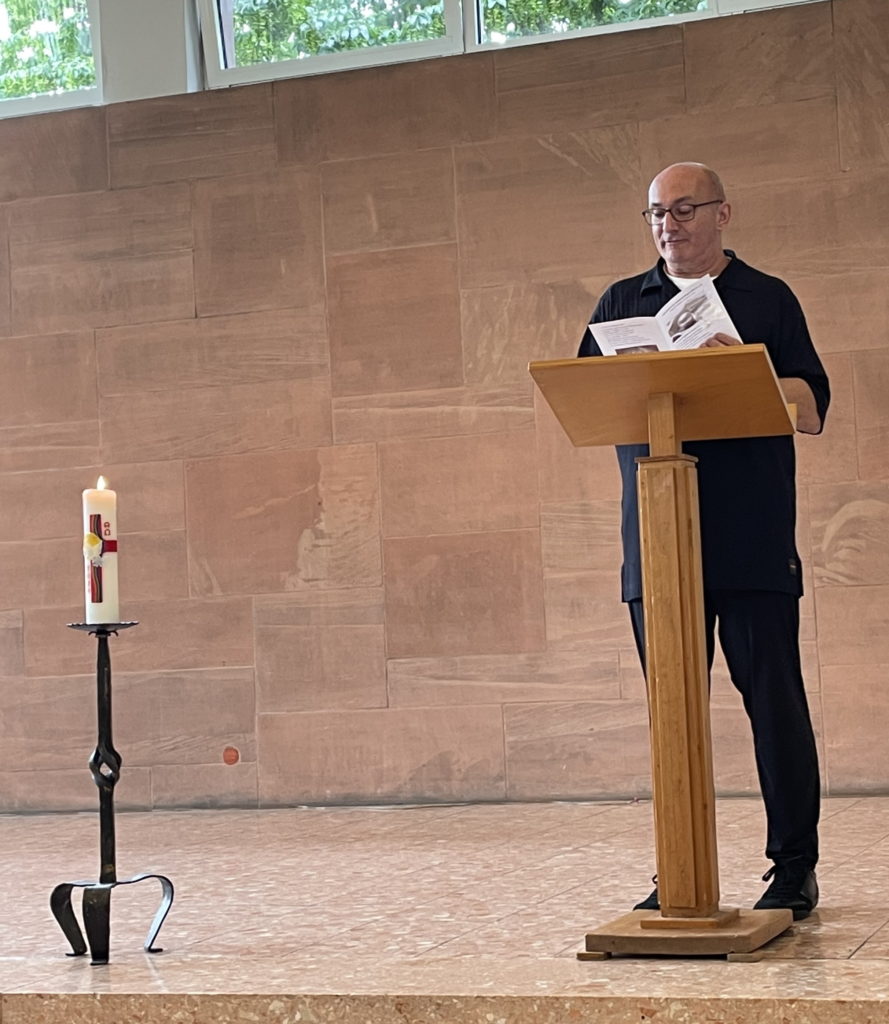 Im Rahmen des Gottesdienstes las er aus dem Matthäus-Evangelium (Mt 13, 44-46 )