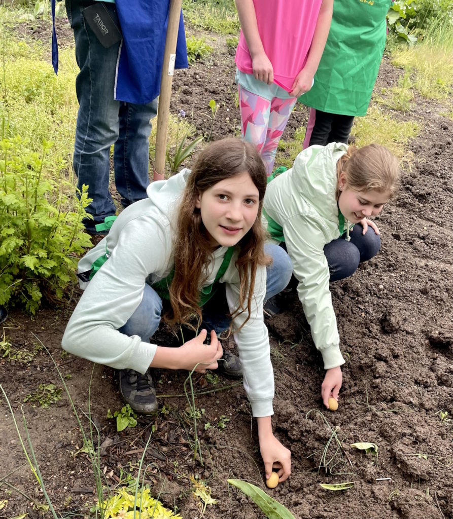 Bereits im Juli zeigten sich die ersten Erfolge, als kleine Kartoffelpflanzen in den Schulgärten der Maria-Ward-Schule prächtig gediehen. Die engagierten Erntehelferinnen konnten schließlich im Oktober eine erfreuliche Ernte einfahren.
