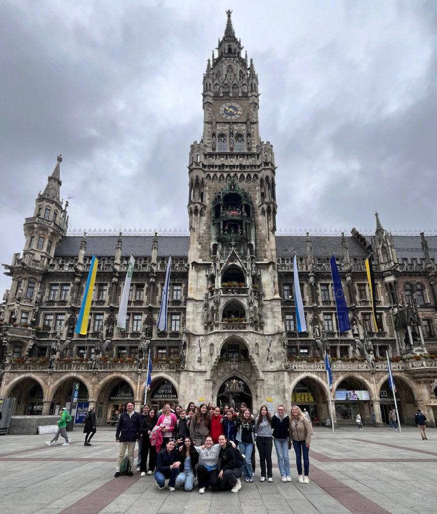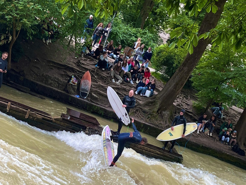 Am Dienstag machten wir uns nach dem Frühstück mit der U-Bahn zum Marienplatz auf. Dort erwartete uns eine aufregende dreistündige Rallye in Kleingruppen durch die Altstadt. Dabei haben wir viel über diverse Gebäude, Kirchen, Brunnen, Skulpturen und Plätze erfahren. Im Anschluss daran durften wir Shoppen. Am Nachmittag trafen wir uns im Klassenverband an der Eisbach-Welle, eine bekannte Sehenswürdigkeit in München. Surfer versuchen dort sich so lange wie möglich in der sehr starken Strömung des Eisbaches, einem Nebenfluss der Isar, auf ihrem Brett zu halten. Wir gingen dann gemeinsam durch einen Teil des Englischen Gartens bis zu einer Eisdiele, die besonders exotisches Eis anbietet (z.B. alkoholfreies Biereis, Champagnereis, Vanillekipferleis usw.).