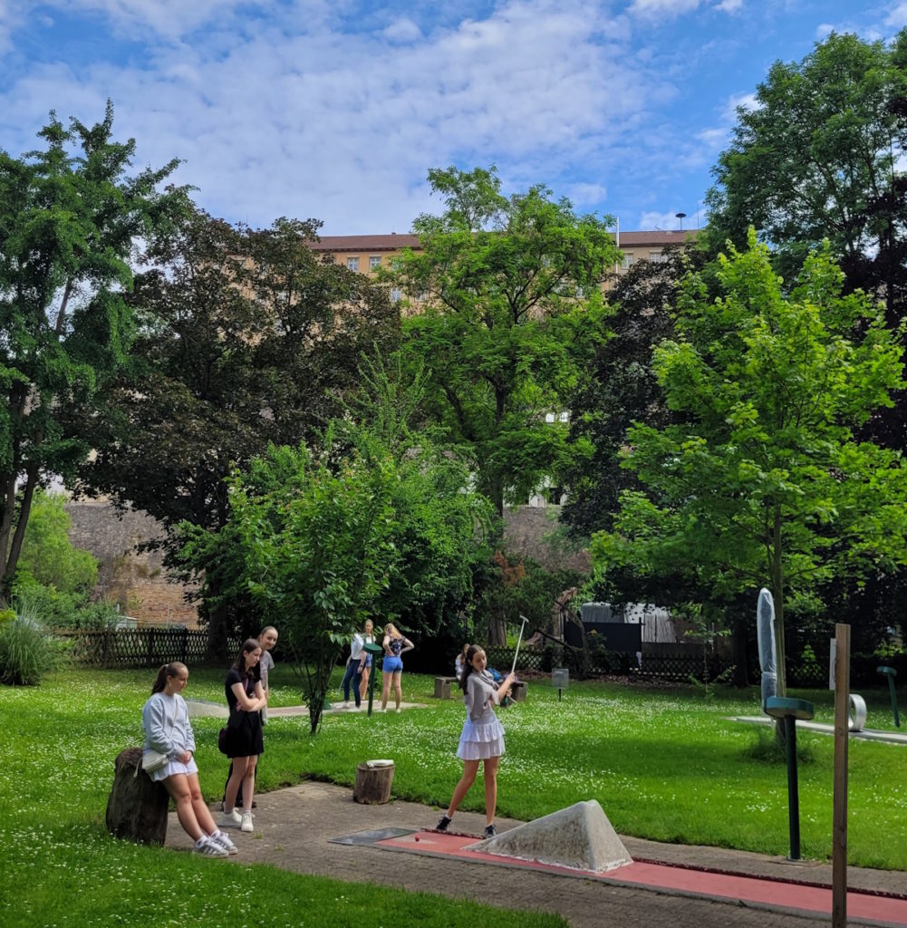 Entspannt ging es am Mittwoch mit Minigolf weiter, außerdem haben wir gemeinsam viele Gruppenspiele gespielt (siehe Foto). Alle haben mitgemacht und wir haben viel Spaß miteinander gehabt. Außerdem hatten wir an diesem Tag viel Freizeit, die wir mit unseren Freundinnen nutzen durften.