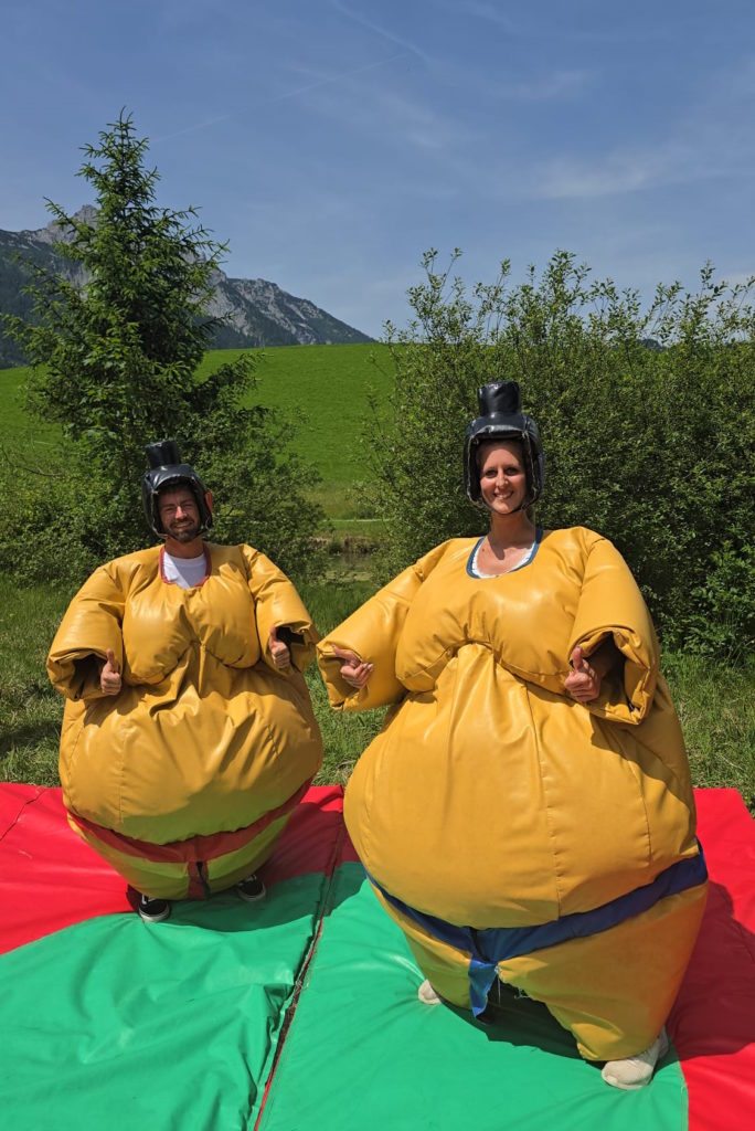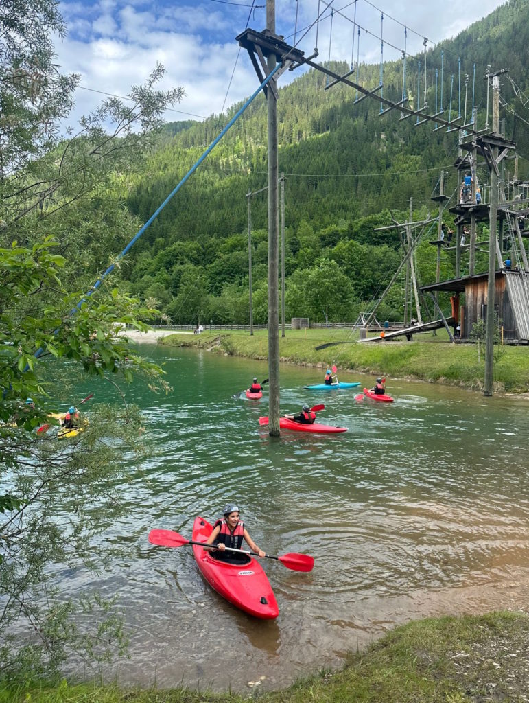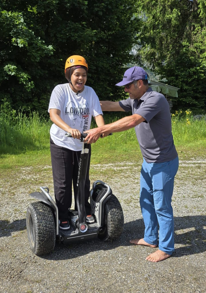 Am Mittwoch durften wir uns gleich zu Beginn bei schönstem Bergpanorama beim Bogenschießen und Tennisgolf ausprobieren – eine echte Herausforderung für Konzentration und Koordination. Viel gelacht wurde beim Sumoringen, bei dem wir uns in große Schaumstoffanzüge zwängten und versuchten, uns gegenseitig aus dem Ring zu schieben. Das Segwayfahren hat manchen so einen Spaß gemacht, dass sie das Fahrzeug am liebsten mit nach Hause genommen hätten. Nachdem wir auch noch SUP auf dem Badesee ausprobiert hatten, waren manche von uns noch immer nicht ausgelastet und wir spielten auf dem Gelände unserer Unterkunft bis spät abends Fußball.
