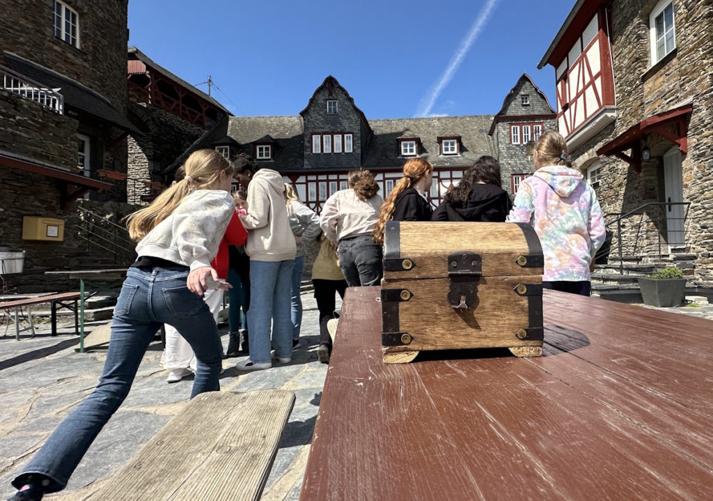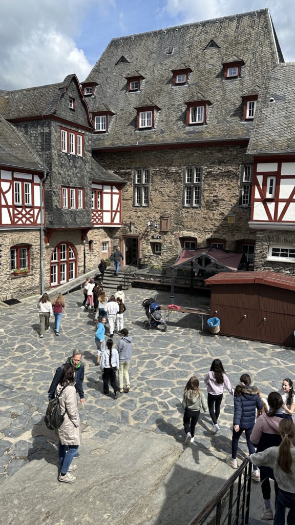 Im April ging es für die Klasse 6a der Maria-Ward-Schule in Bad Homburg auf Klassenfahrt ins idyllische Bacharach – eine Burgjugendherberge direkt am Rhein. Gemeinsam mit dem Klassenlehrer Patrick Pegorer Sfes und der Kunstlehrerin Anja Harms machten sich die 22 Schülerinnen vormittags mit dem Bus von Herrn Linhart aus Königstein auf in die Gegend der Weintraubenberge.