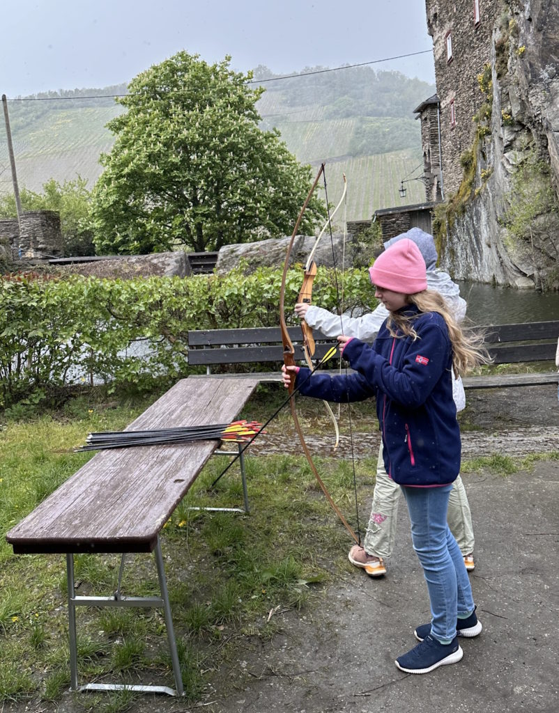 Der erste Programmpunkt bestand aus verschiedenen Stationsaktivitäten, allen voran dem Bogenschießen. Mit viel Spaß und natürlich auch Sicherheitsvorkehrungen konnten die Schülerinnen sich mit Pfeil und Bogen üben. Am Abend folgte ein Spieleabend, der vom Klassenlehrer durchgeführt wurde und dazu diente, die Zusammenarbeit und das soziale Miteinander der Klasse zu stärken.