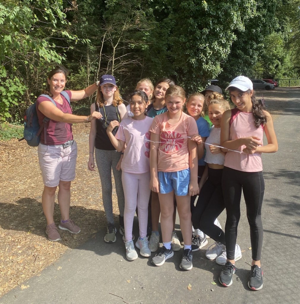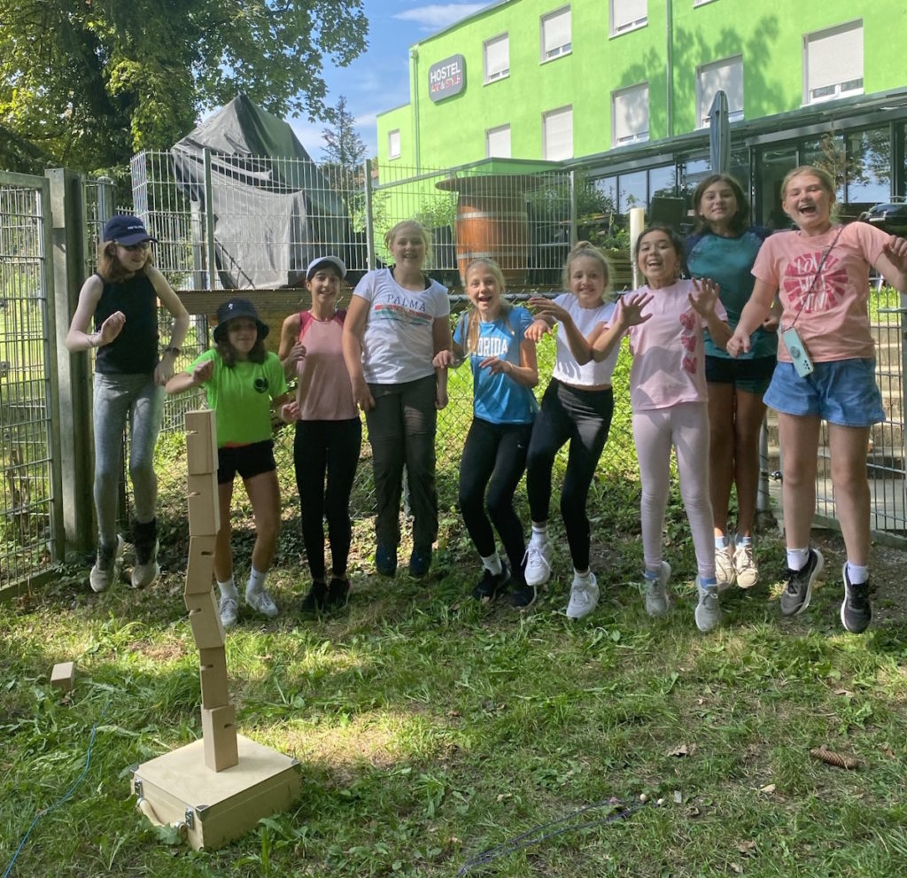 Am Dienstag war der Tag mit Klassenteam-Aktivitäten gefüllt. Dazu kamen zwei Teamleiter vorbei und die Klasse musste in zwei Gruppen knifflige Aufgaben lösen, wie z.B. aus einem DIN A4-Papier einen Reifen ausschneiden, der so groß ist, der mindestens 10 Schülerinnen umfassen kann; oder mit Hilfe von Seilspannungstechniken und Teamwork einen Ball von A nach B transportieren.