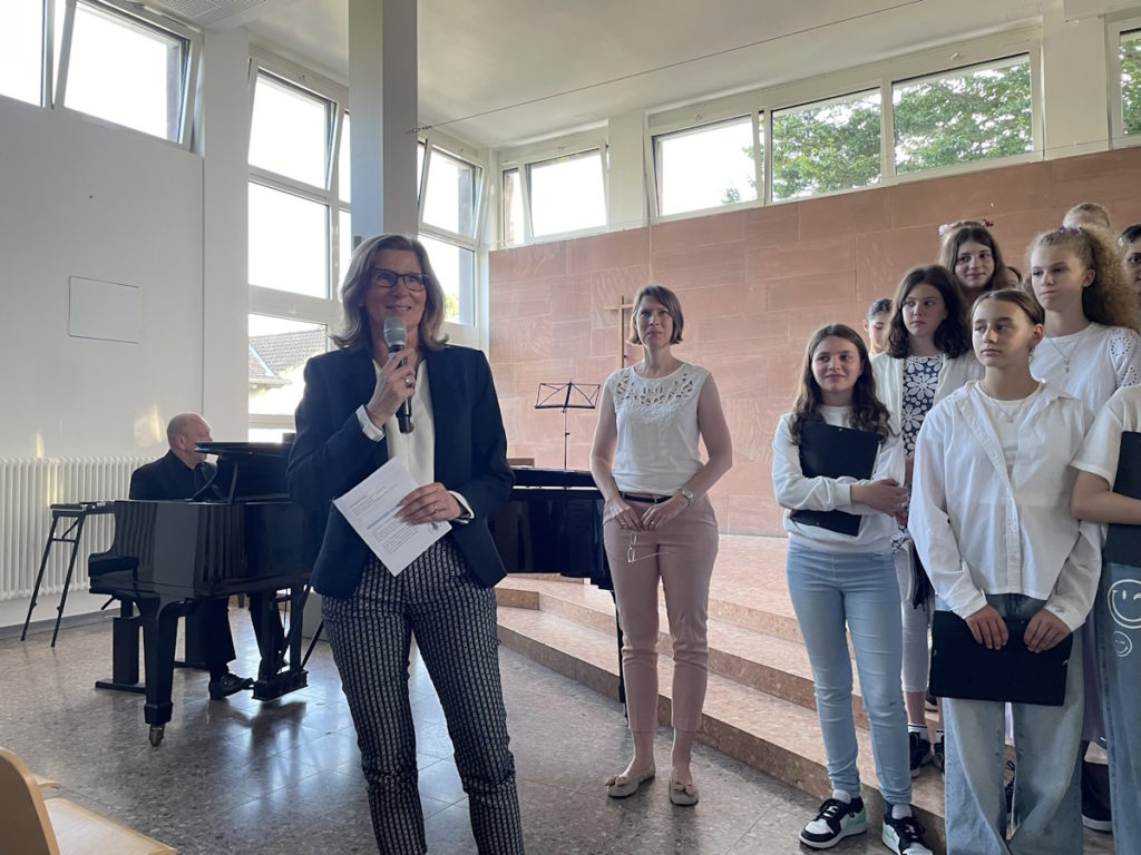 Schulleiterin Dr. Leonie Fuhrmann lobte die großartige Leistung der Schülerinnen und der Gesangslehrerinnen Sarah Melhart und Natalie Porth, die erneut ein herausragendes Gesangskonzert auf die Beine stellten, und hob dankend Hanno Lotz hervor, der es so wunderbar am Klavier begleitet hat.