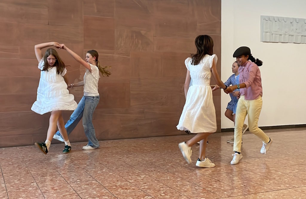 Die Bili-Klasse beeindruckte mit einem Rock’n Roll-Tanz, den sie mit eigenem Gesang begleiteten. Abgerundet wurde die Veranstaltung mit der gemeinsamen Intonation des Schulsongs „We Have Heard Your Call“.