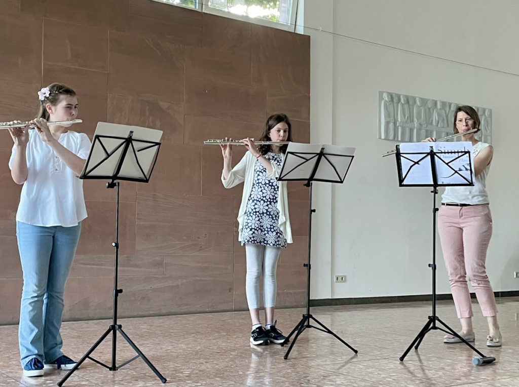 Die schönen Klänge des Querflöten-Trios, bestehend aus Alexa Lange, Zoe Aschmoneit und Frau Porth, trugen wesentlich zur klanglichen Vielfalt des Abends bei.