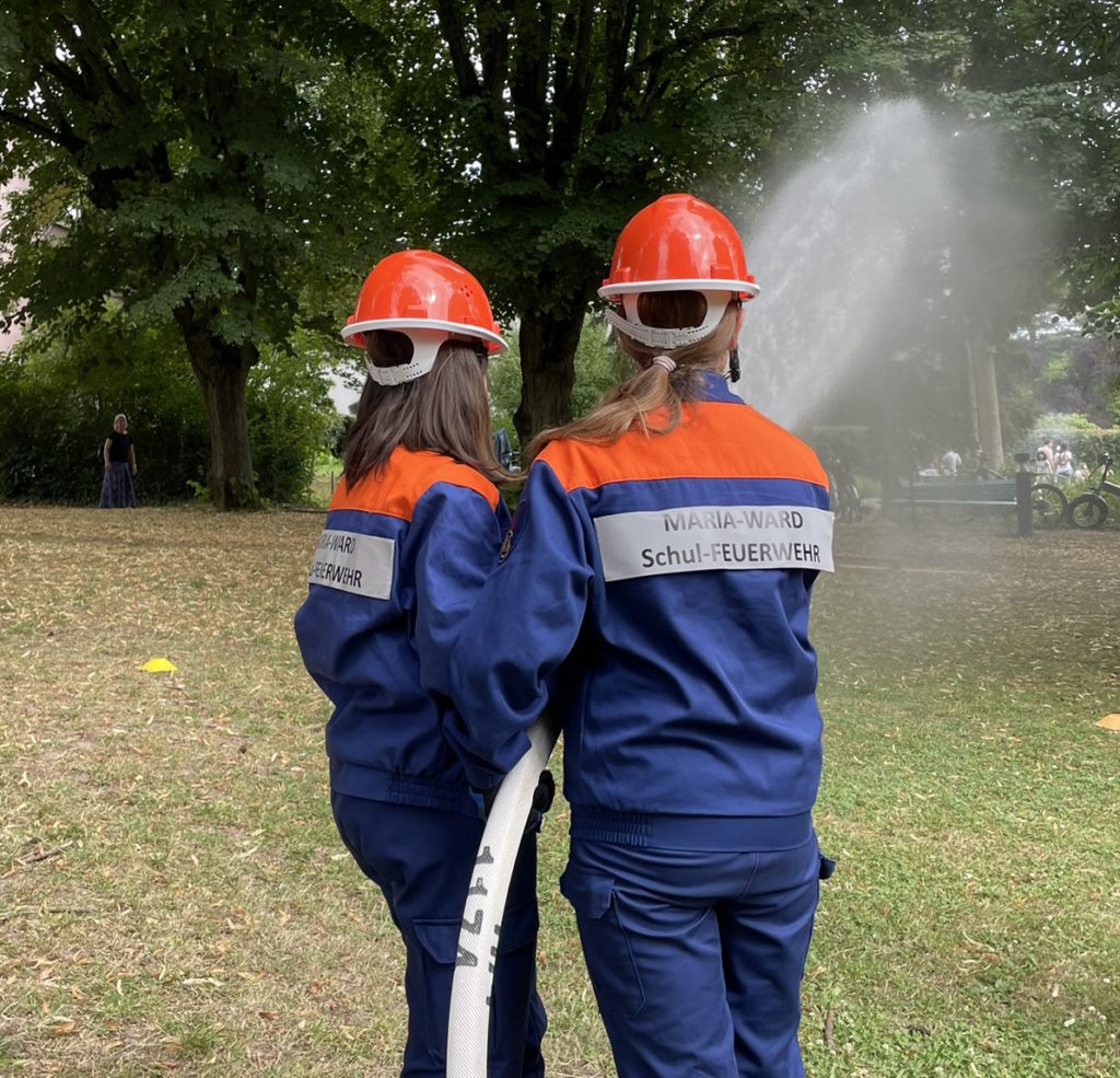 Ein besonderes Highlight des Festes war die Vorführung der Freiwilligen Feuerwehr Bad Homburg. Die Schülerinnen, die an diesem Projekt teilgenommen hatten, boten in voller Montur und mit beeindruckender Professionalität einen spannenden Einblick in die Arbeit der Feuerwehr.