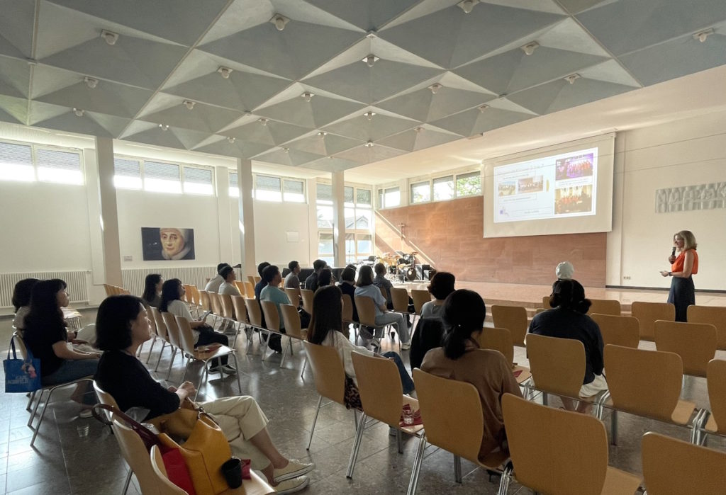 Am vergangenen Freitag durfte die Maria-Ward-Schule eine 22-köpfige Delegation aus Südkorea, begleitet von einer Dolmetscherin, begrüßen. Unter der Leitung von Herrn Jung Hung Chae Ph.D., dem Director General of Education Bureau Korea, besuchte die Delegation verschiedene Schulen in Deutschland, um Einblicke in das deutsche Bildungssystem, innovative Unterrichtsmethoden und Schulkonzepte zu gewinnen. Ziel des Besuchs war es, neue Impulse und Best Practices für die Weiterentwicklung des südkoreanischen Bildungssystems zu sammeln und durch den Austausch von Erfahrungen die Bildungsqualität in beiden Ländern zu verbessern sowie internationale Bildungskooperationen zu stärken.