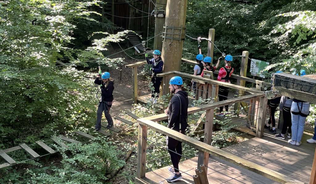 Der zweite Ausflug führte uns in den Kletterwald in Seulberg. In luftiger Höhe balancierten wir über Seilbrücken, schwebten an Zip-Lines durch die Bäume und überwanden mutig verschiedene Hindernisse.