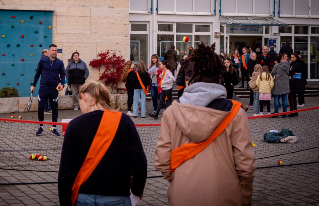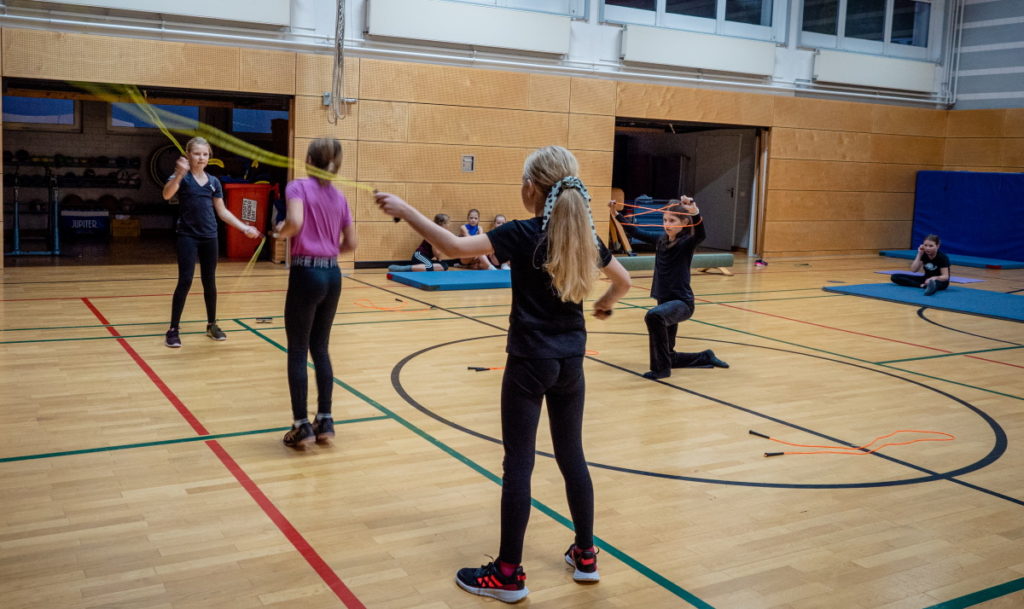 Den informativen Teil zum Schwerpunkt Sport übernahm Fachbereichsleiterin Joelle Galikine. Unsere jüngsten Schülerinnen präsentierten dann in der Sporthalle eine zuvor einstudierte Choreografie und beeindruckten mit ihrer Darbietung das Publikum.