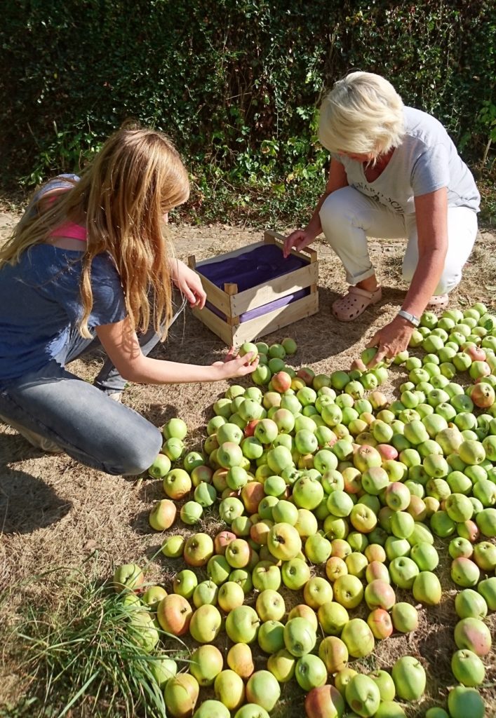 Die 29 Schülerinnen der Klasse 7b hatten gut damit zu tun, die reichliche Ausbeute der rund 20 voll tragenden Apfelbäume zu ernten.