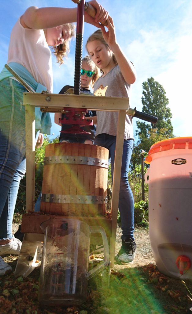 Das vor 15 Jahren im Rahmen einer Schulveranstaltung entstandene Projekt ist ein allseits mit Vorfreude erwartetes Ritual. Seit jeher stehen Frau Brennecke und Frau Müller-Kammerinke den Schülerinnen mit Herz, Hand und ihrem Wissen bei der Ernte und der anschließenden Saftherstellung zur Seite. Hierbei sollen den Schülerinnen nicht nur die einzelnen Produktionsschritte, sondern vielmehr der wertschätzende Umgang mit der Natur vermittelt werden.