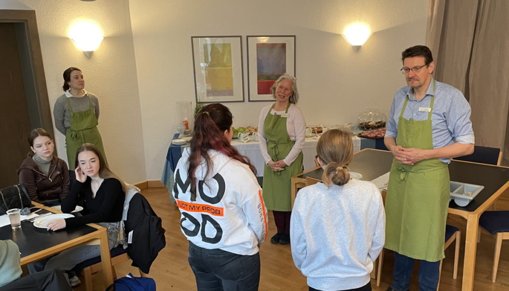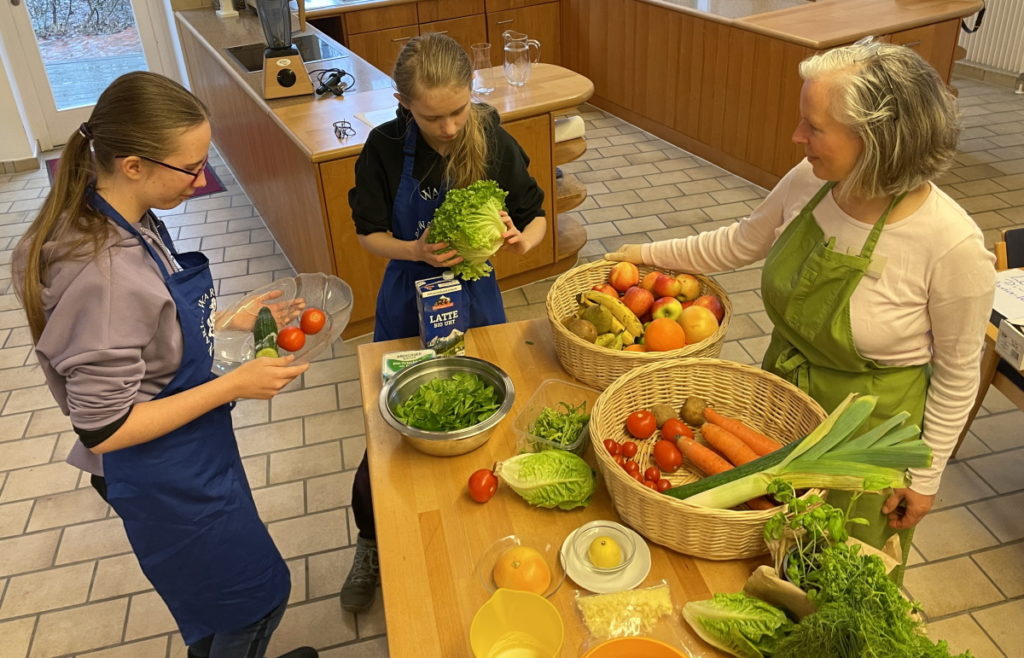 Unsere Schülerinnen des Jahrgangs 9 nahmen im Rahmen des Polytechnikunterrichts an einem Koch-Seminar der Akademie Gesundes Leben teil. Zunächst stellten sich Seminarleiter Martin Rukowsky, gelernter Koch und Bäcker, Dozentin Astrid Schmitt-Dossou, Ökotrophologin und Fachfrau für Heil- und Wildkräuterseminare sowie Praktikantin Imke, Studentin der Ernährungswissenschaften vor.
